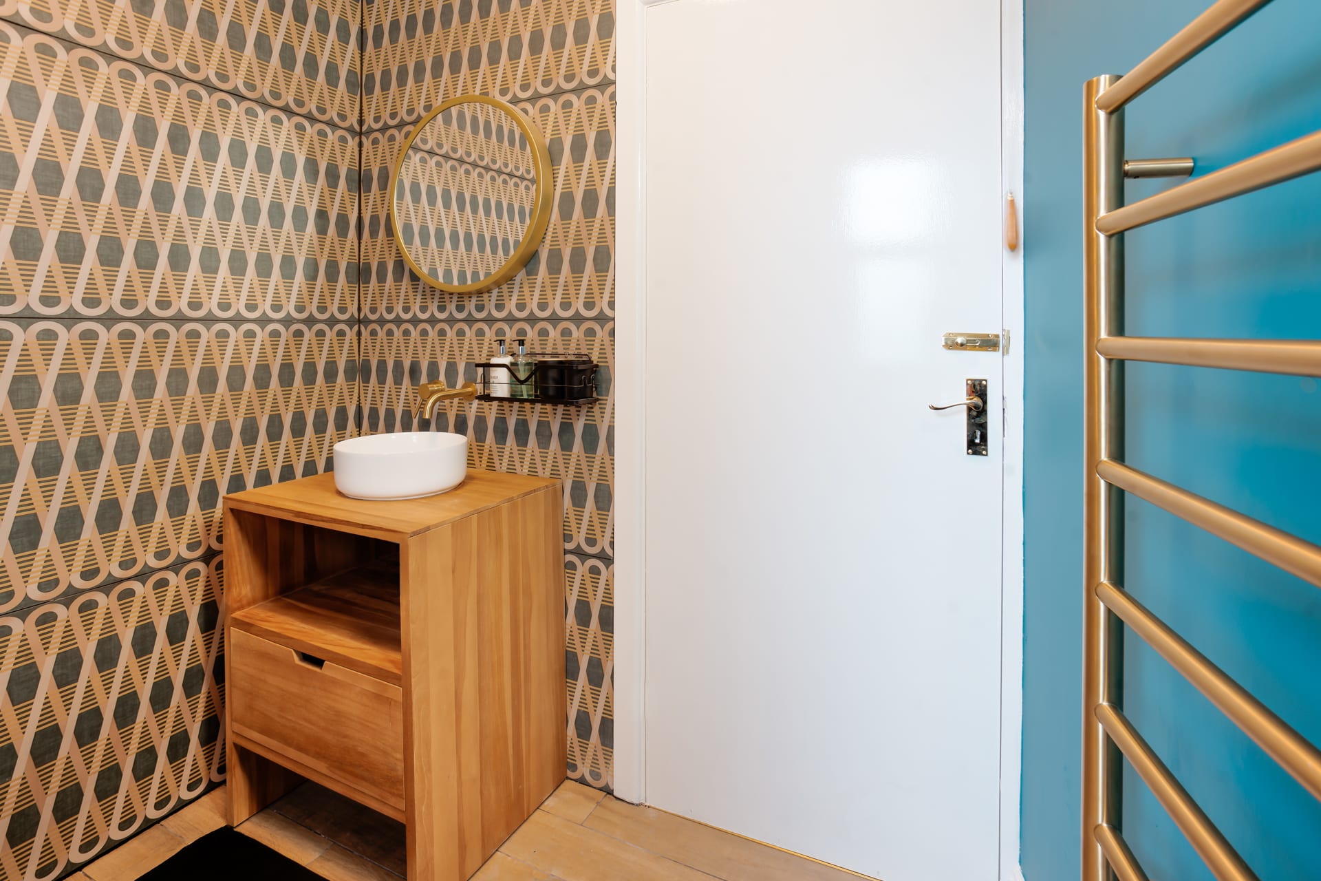 This Albert Street accommodation is a one-bedroom, one-bathroom apartment that provides both linens and towels for your stay. The bedroom features a super comfy king bed that can be found up the feature spiral staircase. The bathroom is a wet room bathroom with huge walk-in shower, toilet, wall-mounted towel rail radiator and sink above the vanity unit.