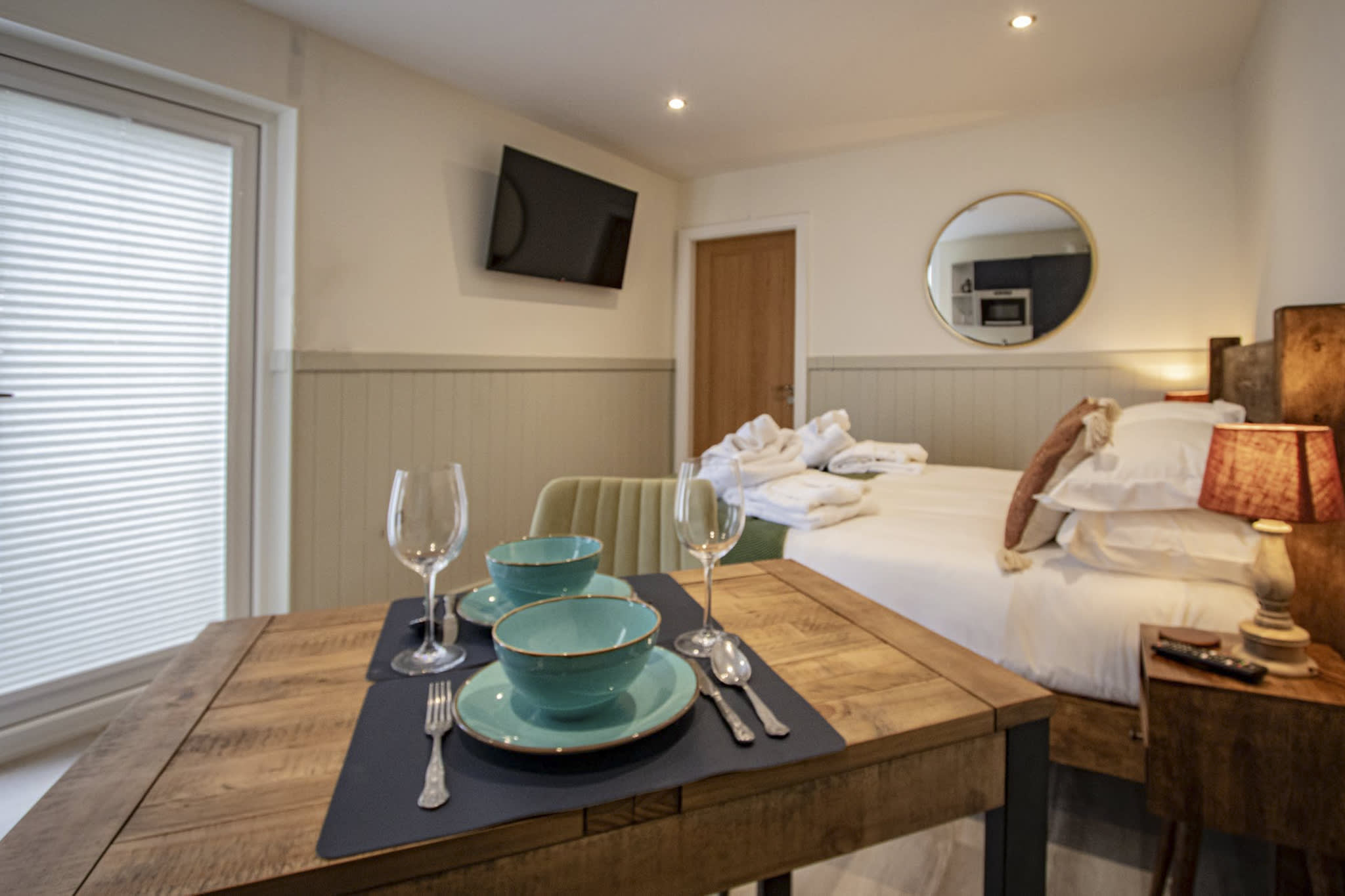 Sit down at the dining table set for two and enjoy a meal together, or head to the nearby Brown Horse to enjoy an excellent meal surrounded by a bustling country pub atmosphere – but don’t forget to make your reservation to ensure that there’s a table ready and waiting to welcome you!