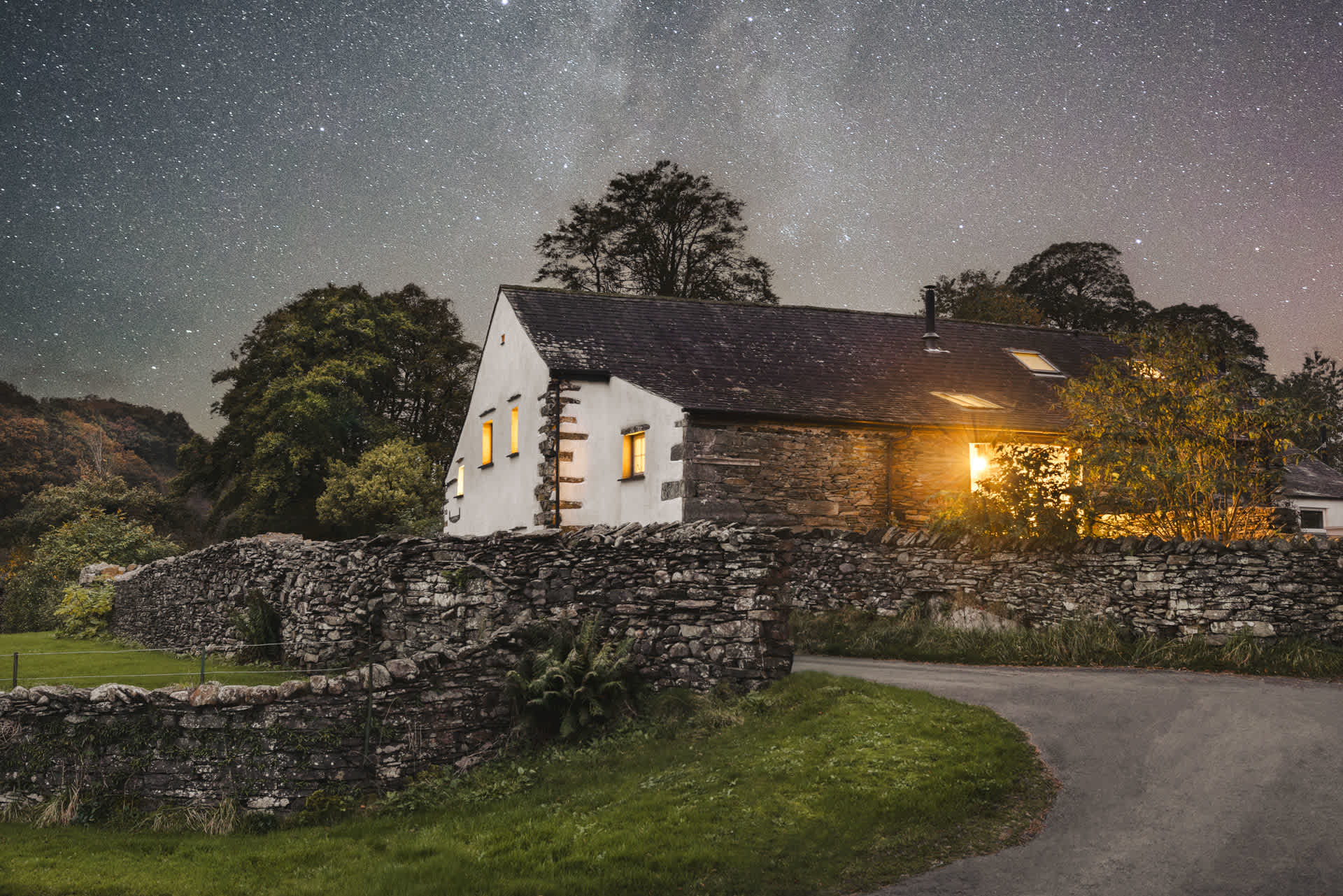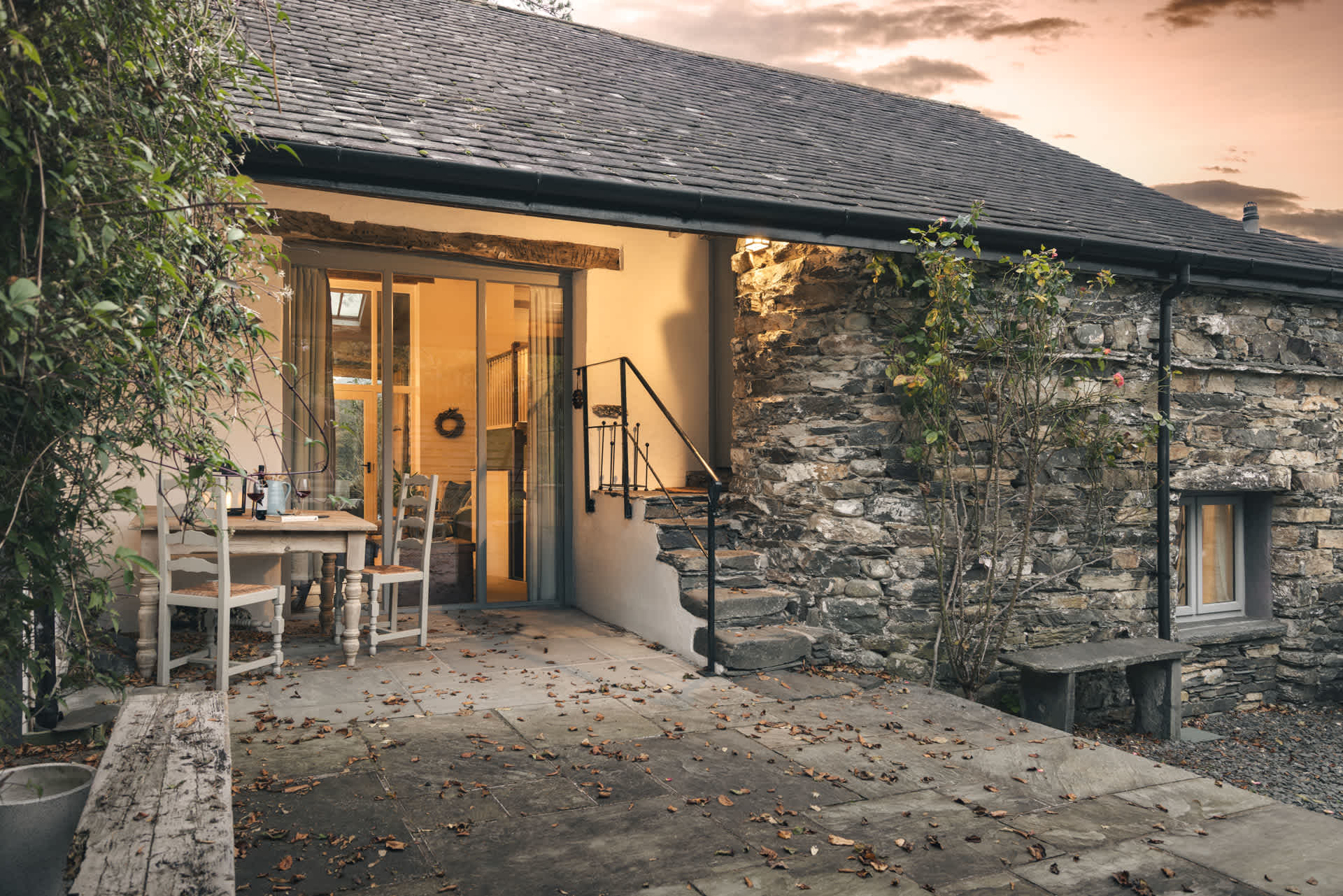 This 200-year-old Lake District cottage seamlessly blends tradition and modern luxury. It offers an open-plan bedroom with a super king bed and a luxurious ensuite bathroom. The lower level features a comfy lounge and a fully equipped kitchen. Enjoy off-street parking, an electric car charger, and a serene outdoor seating area. Topped off with a fully enclosed hot tub, this high-end holiday cottage is a year-round delight.