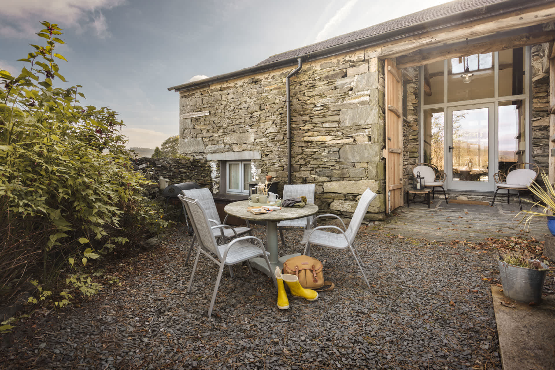 Jacksons Barn is a charming two-bedroom holiday cottage and self-catering stone barn near Coniston Water in the Lake District. The cosy open-plan living area features a log-burning stove, and the kitchen is well-equipped. The property offers two en-suite bedrooms, one with a king bed and the other with two single beds. Outside, enjoy a private patio with countryside views. This dog-friendly accommodation has private parking and is the perfect base for your Cumbrian retreat.